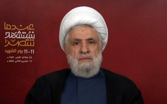 דער פירער פון חיזבאלא נאאים קאסאם האט היינט ווידעראמאל ארינטער געריסן דעם געדאנק פון אנטוואפענען די גרופע